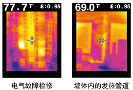 相較于同類型產品,TG165擁有更高像素的紅外分辨率,高達4800像素,更廣視場角,24:1的距離系數比,更廣的測溫范圍極大地擴展了應用范圍,8GB內存方便用戶保存大量圖像資料,發射率設定值可調節可預設,TG165的良好性能保持了美國菲力爾公司(FLIR Systems)的一貫品質,可應用于解決電氣故障檢修、墻體內發熱管道、機械過熱以及制冷問題。作為一款非接觸式測量工具,TG165專用于測量因溫度過高或過低而無法觸摸、難于接近或因太危險而無法靠近的物體表面。