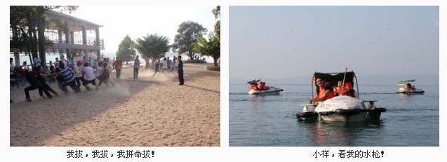 我們在湖畔的沙灘上進行了一次友誼拔河比賽,選手和拉拉隊的熱情,攪得湖水都沸騰了。