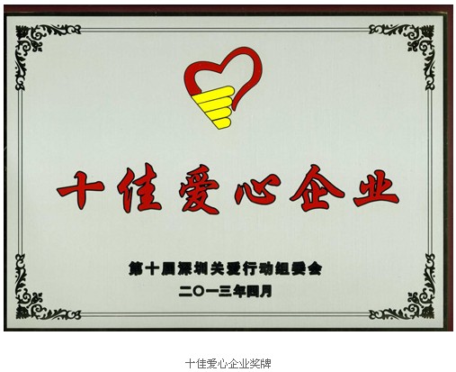 研祥智能科技股份有限公司等十家企業榮獲2013年深圳市“十佳愛心企業”的稱號。