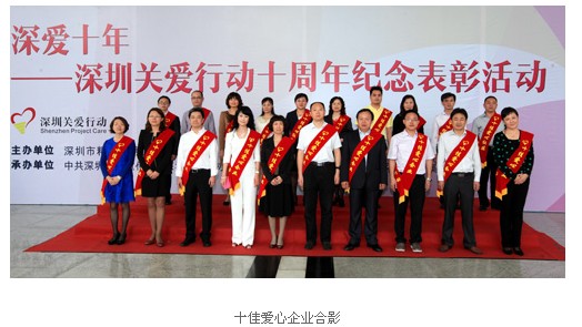 活動回顧:4月28日下午,“深愛十年”深圳關愛行動十周年紀念表彰活動在深圳廣電大廈拉開帷幕。百萬市民矚目的年度“十佳愛心人物”、“十佳愛心企業”等名單一一揭曉。中央、省文明辦的相關領導,深圳市委書記王榮等市有關領導出席,相關成員單位以及社會各界愛心人士代表近1000人參加活動。以“關愛•感恩•回報”為主題的深圳關愛行動迄今已連續舉辦十屆,現已經成為深圳精神文明建設的重要品牌。