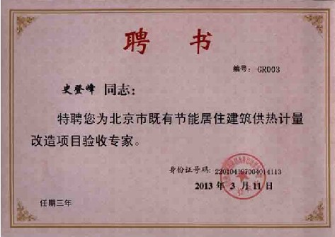 為此,北京城建科技促進(jìn)會(huì)通過(guò)公開(kāi)征集和審核的方式確定選定“北京既有節(jié)能居住建筑供熱計(jì)量改造項(xiàng)目驗(yàn)收專(zhuān)家”。非常榮幸,碩人時(shí)代戴總、史總和鄧總(排名不分先后)獲此殊榮,這將促使公司對(duì)供熱計(jì)量工作做出更大的貢獻(xiàn)。