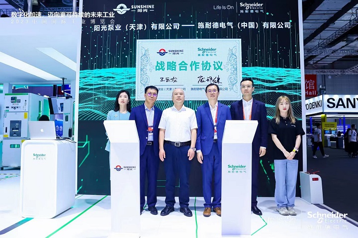 今天,在2023年第23屆中國國際工業博覽會現場,全球能源管理和自動化領域的數字化轉型專家施耐德電氣,與陽光泵業(天津)有限公司(以下簡稱“陽光泵業”)達成戰略合作。憑借在數字化轉型、軟硬件產品、綠色低碳等方面的能力優勢和實踐經驗,施耐德電氣將助力陽光泵業推動數字化轉型及先進智能工廠建設,進一步提高生產效率與質量,優化節能減排及運營管理能力,引領我國裝備制造業走向綠色、智能、先進。施耐德電氣高級副總裁工業自動化業務中國區負責人龐邢健、陽光泵業總經理王云龍,代表雙方簽署合作協議。