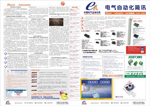 自2007年第2期開始,《電氣自動(dòng)化簡(jiǎn)訊》由原來(lái)的4版擴(kuò)充到8版,同時(shí)內(nèi)容更豐富,實(shí)用性更強(qiáng),歡迎廣大企業(yè)免費(fèi)索閱。