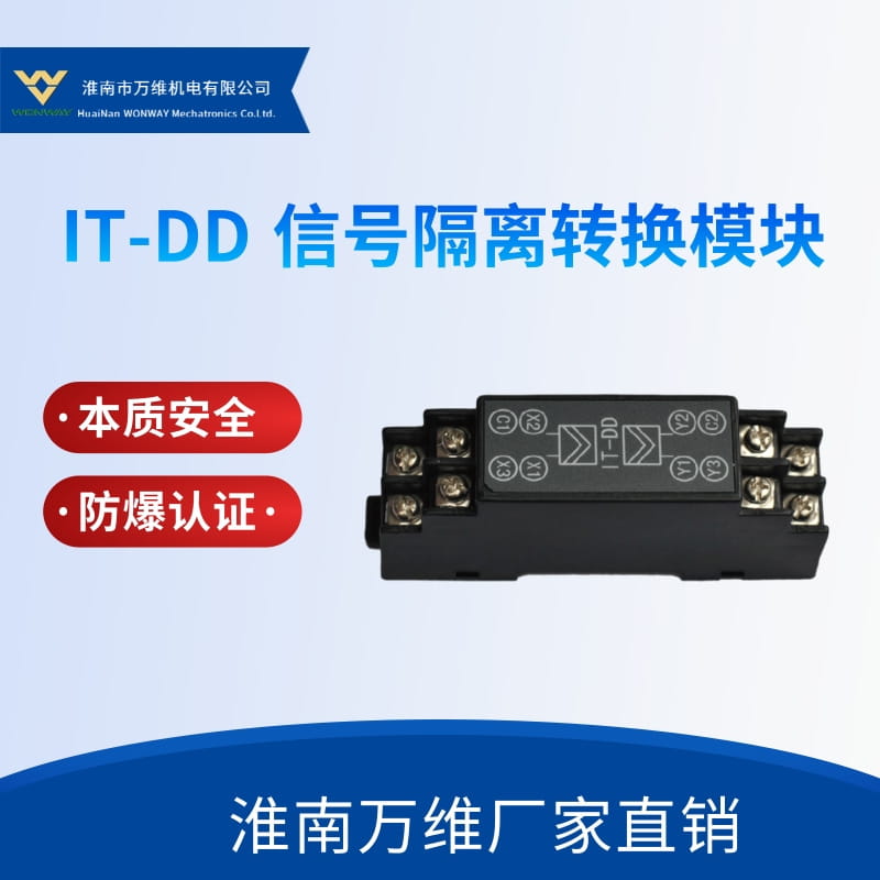 1、 IT-DD 信號隔離轉換模塊(三路數字量與數字量隔離安全柵) 產品概述 IT-DD是一款適用于煤礦井下有瓦斯和煤塵爆炸危險環境中的三路數字量隔離模塊,采用光電隔離技術,實現數字量抗干擾隔離,本安信號與非本安信號之間隔離或輸入、輸出電壓變換等作用。 防爆型式及防爆標志 防爆型式:一般兼礦用本安型;防爆標志:[Exib]I。 產品用途 ◆ 用于本安信號與非本安信號之間隔離。 ◆ 用于數字量抗干擾隔離。 ◆ 用于開關量輸入與輸出之間電壓變換。 性能特點 抗干擾能力強; 隔離電壓高;響應速度快;體積小;安裝方便。 應用領域 本安型編碼器信號、本安型開關量信號與非本安型PLC接口之間的隔離變換;非安型編碼器信號,非安型開關量輸入信號與本安型PLC接口之間的隔離變換;強干擾區域的開關量信號隔離、干擾抑制。