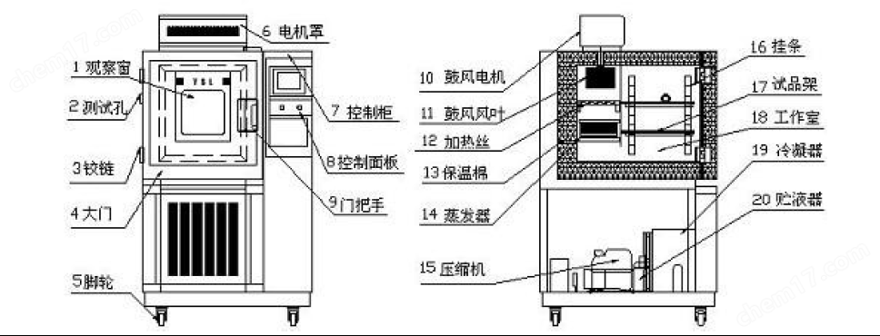 六、制冷系統: 1.壓縮機:原裝法國泰康機組; 2.制冷方式:單(雙)機制冷(風冷型); 3.冷凝方式:強制風冷卻; 4.制冷劑:R404A、R23(環保型); 5.系統管路均作通氣加壓48H撿漏測試; 6.加溫、降溫系統*獨立; 七、保護系統: 1.風機過熱保護; 2.整體設備欠相/逆相保護; 3.制冷系統過載保護; 4.制冷系統超壓保護; 八、設備使用條件: 1.環境溫度:5℃~+28℃(24小時內平均溫度≤28℃) 2.環境濕度:≤85%R.H 3.操作環境需要室內通風良好,機器放置前后左右各80公分不可放置東西;