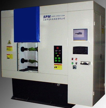 WSJK3515型數控鞋楦機是我公司最新推出的加工鞋楦的專用理想設備。該機揉合機電、數控、液壓、氣動一體化控制技術,運用電腦最新科技,液晶顯示,等國際流行款式,外觀漂亮,操作簡單,掃描刻楦一體設計,仿型逼真,刀紋美觀,刀花清晰,具備樣楦數據存貯能力及數字化縮放,可設定各種不同縮放標準,可任意長度,圍度單獨縮放。具有頭部、跟部精細刻制功能,精細刻制的范圍,刀花寬度任意可調。可設定粗刀刻楦,粗細刀分二、三次完成生產能力。旋轉軸轉速最大為50/分,是機械機一倍左右,每小時加工能力10-15雙,掃描速度快,最大可達30/分,總功率7Kw。該機床的采樣數據可直接用于以后4工位機床及6工位機床的使用,為以后企業擴大生產規模節省資源。