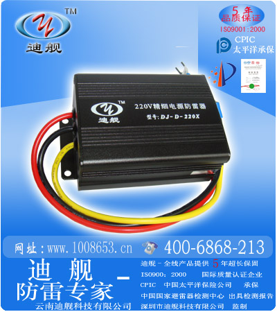 名稱: 220V精細(xì)電源防雷器 型號: DJ-D-220X 品牌產(chǎn)地: 迪艦 - 深圳 產(chǎn)品規(guī)格: 顏色:黑色 尺寸:11.5*6.5*4cm 凈重:500g 相關(guān)證書: 國家避雷器中心檢測報(bào)告 咨詢電話: 400-6868-213 產(chǎn)品簡介: 迪艦電源精細(xì)浪涌保護(hù)器,采用多級保護(hù)電路,選用最新高速浪涌保護(hù)器件,反應(yīng)速度快,輸出殘壓低,性能穩(wěn)定,可對設(shè)備做完全精細(xì)/防雷/避雷/SPD浪涌保護(hù).接口采用標(biāo)準(zhǔn)工業(yè)接線端子,使用方便,產(chǎn)品選用鋁合金外殼、密封性好,具有防塵、防腐蝕功能,采用串聯(lián)方式連接安裝,抑線路上的高壓脈沖,保護(hù)后端設(shè)備免受雷電、工業(yè)浪涌的損害 產(chǎn)品特性: