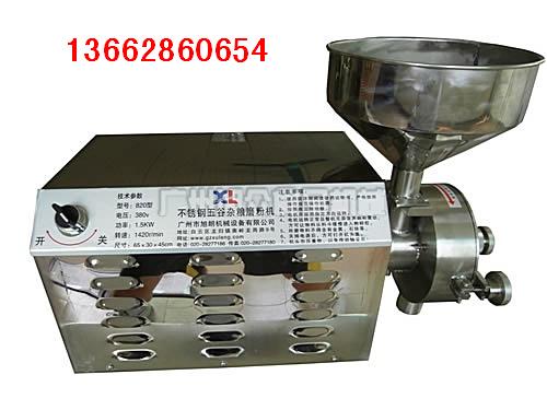 型 號:820型(不銹鋼材質) 電 壓:220V/380V(由客戶根據需要任選) 電機功率:1500W 電機轉速:1420 r/min 成品細度:50~200目 生產能力:20~40kg/h 外形尺寸:65*30*45(cm) 機器凈重:40公斤 特 性:連續投料式生產 有無篩網:無篩網 可我們公司現在的820型不銹鋼五谷雜糧磨粉機經過研發人員的反復改進,現在的是第三型,已經達到99%客戶的加工要求,第三型磨粉機的主要優點表現為: