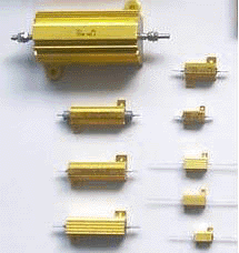 金色鋁外殼電阻器 產品介紹: 名稱: 金色鋁外殼電阻器 I. 特點 散熱性好,適合散熱板安裝 絕緣性高 完全熔焊結構 安裝于基板上應用熱吸收效應 具有環境保護的模壓結構 對最低電抗元件存在無感繞制 操作中具有良好的可靠性 III.材料說明 電阻絲:銅鎳合金或鎳鉻合金,依據阻值大小而定 芯料:陶瓷或滑石瓷依據物理尺寸而定 密封材料:硅酮模壓塑料 外殼:陽極氧化鋁外殼 帽蓋:不銹鋼 引出端子:鍍錫銅或帶螺紋的不銹鋼棒 IV. 特殊改變 鋁外殼電阻可依據客戶要求做如下改變: 引出端形狀和材料 阻值公差 T.C.R 外殼外形 安裝孔螺紋 預處理和其他附加實驗 V. MIL規范應用 MIL-PRF-18546 軍用規范涵蓋于基板安裝功率型鋁外殼電阻器 VI. 降負荷曲線圖,溫升曲線圖和熱吸收板減少的降功耗圖
