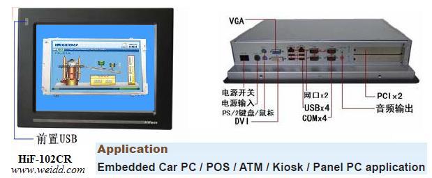 ■ 特點:12.1帶2pci擴展工業平板電腦,該嵌入式工業電腦主頻是雙核intel  j1900/i3/i5/i7CPU嵌入式工業電腦; 該工業電腦為超薄無風扇工業平板電腦,是一款真彩帶觸摸屏嵌入式工控機,可擴展2xPCI,前置1 X USB2.0端口,前置狀態指示燈,硬盤XYZ三軸全向專業減震設計.(特價銷售12.1寸酷睿無風扇超薄工業平板電腦,12寸嵌入式工業電腦型號hif102cr)