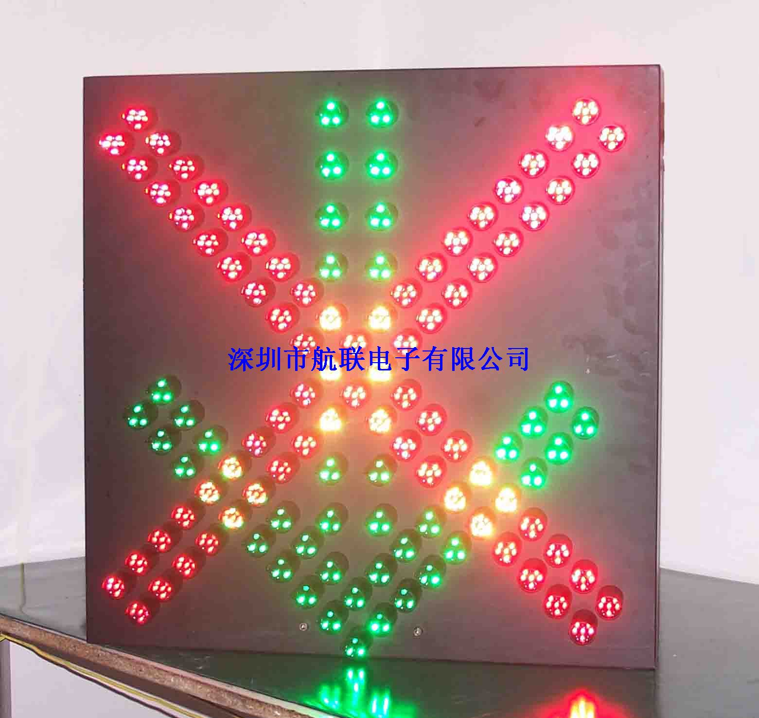 5.每套標志包括二個圖形顯示單元,每個圖形(“×”或“↓”)有效顯示尺寸為600×600mm。可根據控制命令分別顯示紅“×”或綠“↓”。