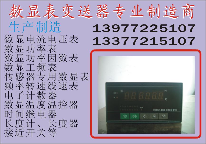 ⊙ 外型尺寸48H×96W, 紅色數(shù)碼管顯示