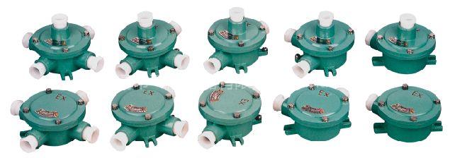 BHC防爆穿線盒最常見的形式是直通、三通、四通、彎通幾種樣式。主要用于接線管與接線管之間、壁與接線管之間的接線管路過渡和密封保護。具有防爆性能優越、安裝方便、防護等級高等優點。適用于1區、2區危險場所;IIA、IIB、IIC類T1~T6組易燃易爆性氣體環境。防爆標志為ExeII;防護等級為IP54或IP65。