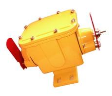 當膠帶運輸現場發生緊急事故時,拉動系在吊耳上的鋼絲繩,使機內的滑塊與開關作用,發出停機信號,鎖定機構使開關保持輸出狀態,事故處理完畢后需要扳動鎖定機構才可復位。