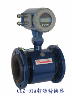 CGD系列電磁流量計是采用微智能化技術開發的一種高技術產品,它分為現場顯示型(一體型)和遠傳顯示型(分體型)兩大類,它能測量導電液體介質,包括酸、堿、鹽等強腐蝕性及液固兩相體的體積流量。   測量原理是其于法拉第電磁感應定律。即:導電液體在磁場中作切割磁力線運動,導體產生感應電動勢。                                                                                                                                  測理原理:測量流量時流體流過垂直于流動方向的磁場導電性液體的流動感應出一個與平均流速(亦即體積流量)成正比的電壓。因此要求被測的流動液體具有最低限度的電導率其感受應通過二個液體直接接觸的電極檢出并通過電纜傳送至放大器然后轉換成統一輸出信號這種測量方式具有如下做優點:  1、測量管內無阻流件因此無附加壓力損失。2、由于信號在整個充滿磁場的空間中形成它是管道截面上的平均值因此從電極平面至傳感器上游端平面間所需直管段相對較短長度為5*DN(DN為導管的內直徑)。 3、只有管道和電極與被測液體接觸。因此只要合理選擇電極及管道內襯材料即可達到耐腐蝕耐磨損的要求。 4、傳感器輸出信號是一個與平均流速成線性關系的電動勢。 5、測量結果與液體的壓力、溫度、粘度電導率不少于最低電導率等物理參數無關,所以測量精度高、工作可靠。