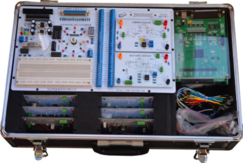 DSO38Lab-DSO虛擬儀器測控實驗實訓系統(tǒng) 虛擬儀器測控實驗箱在設計上采用了模塊化設計,各模塊均有標準大小及結構,在進行每個功能模塊的設計時,實驗模塊上印有實驗電路圖,實驗模塊上的元器件方便觀察,并提供實驗電路測量點的測試鉤。在設計時均對產品的系統(tǒng)性、可靠性、易用性、穩(wěn)定性以及后期的功能拓展等多個方面進行了全方位的考慮,并且對實驗教學、實驗室維護等方面也做了一系列的優(yōu)化。 技術要求和說明 1.虛擬儀器機箱: ·采用實驗箱+底板+插卡式結構,所有虛擬儀器板卡均為USB接口; ·電源輸出功能:底板可提供+5V、-5V、+12V/、-12V/電源。 ·實驗面包板:170*65mm; ·接口端子座:50針,37針; ·接線端子排:72路; 2.虛擬儀器任意波形發(fā)生器: ·輸出信號通道數:1; ·輸出頻率范圍:正弦波不低于10MHz、其他波形不低于5MHz; ·最高采樣速率:不低于50MSa/s; ·輸出波形:正弦波、三角波、鋸齒波、方波、脈沖、噪聲、調制和其他自定義波形; ·參數輸入功能:幅值、周期(頻率)、初始相位、單個和數個周期波形設定; ·幅度范圍:不低于8Vpp, ·偏置范圍:不低于±4V; ·分辨率:不低于12位; ·掃頻范圍:0~10MHz; 3.虛擬儀器TTL電平信號發(fā)生器: ·輸出信號通道數:1; ·輸出頻率范圍:不低于5MHz; ·輸出電平:≥3.3V; 4.虛擬儀器數字存儲示波器: ·模擬輸入通道數:2; ·雙通道實時采樣頻率:不低于200MSa/s, ·時基范圍:5ns/div~50ms/div,向下按5、2、1方式步進; ·測量信號帶寬:不低于20MHz; ·垂直靈敏度:20mV/div~2V/div,向上按1、2、5方式步進; ·耦合方式:DC、AC、GND; 5.虛擬儀器頻譜分析儀: ·模擬輸入通道數:2; ·雙通道實時采樣頻率:不低于200MSa/s; ·頻譜范圍:不低于50MHz; ·垂直靈敏度:20mV/div~2V/div,向上按1、2、5方式步進; ·頻譜窗函數:不低于6種; 6.虛擬儀器掃頻儀: ·頻率特性選擇:幅頻特性、相頻特性; ·頻率范圍:1Hz~ 10MHz; ·頻率精度:<±1ppm; ·掃描頻率分辨率:20mHz; ·掃描方式:線性、對數; ·相位范圍:-180度~+180度; ·相位分辨率:1度; 7.虛擬儀器阻抗分析儀: ·測量模式:LCR(LCR測量),分析儀(掃描測量),連續(xù)測量 ·測量量程:1Ω~10MΩ; ·測量頻率:10Hz~10MHz(20mHz~100Hz步進); 8.虛擬儀器邏輯分析儀: ·輸入信號通道數:不低于16路; ·取樣頻率:不低于200MSa/s, ·觸發(fā)電壓范圍 -6V~+6V; ·測量信號帶寬:不低于100MHz; ·觸發(fā)電壓分辨率 ±0.1V; ·存儲深度:不低于64K; 9.虛擬儀器萬用表: ·直流電壓測量可選檔位:60mV、600mV、6V、60V、800V; ·交流電壓測量可選檔位:60mV、600mV、6V、60V、800V; ·直流電流測量可選檔位:60mA、600mA、6V、10A; ·直流電流測量可選檔位:60mA、600mA、6V、10A; ·電阻測量可選檔位:600Ω、6K、60K、600K、6M、60M; ·電容測量可選檔位:40nF、400nF、4uF、40uF、400uF; ·二極管測試:支持; ·通斷蜂鳴:支持; ·自動量程:支持; ·各路均帶電路保護; 10.虛擬儀器程控可調電源: ·電壓輸出范圍:不少于2路、不低于9V;軟件動態(tài)編程輸出; ·電流輸出范圍:0~2000mA Max; ·電源調節(jié)方式:軟件動態(tài)編程輸出; 11.虛擬儀器多功能DAQ采集卡: ·模擬輸入通道:不低于16路; ·輸入通道分辨率:12位分辨率; ·總采樣率:不低于200kS/s; ·FIFO: 不低于4K; ·模擬輸出通道: 不低于4路; ·輸出通道分辨率: 不低于12位; ·輸出通道更新率: 不低于100 kS/s; ·數字輸入通道:不低于16路; ·數字輸出通道:不低于16路; ·計數器:不低于3個; ·計數器精度:32位; 12.標準實驗模塊: ·電子秤(壓力)實訓單元; ·電機調速與測速系統(tǒng)實訓單元; ·步進電機控制與霍爾元件檢測系統(tǒng)實訓單元; ·溫度測量系統(tǒng)實訓模塊; ·光強度檢測與控制系統(tǒng)實訓模塊; ·磁場場強計實訓模塊; ·可燃氣體檢測系統(tǒng)實訓模塊; ·濕度測量計的實訓模塊; ·紅外發(fā)射與接收系統(tǒng)實訓模塊; ·熱釋電檢測系統(tǒng)實訓模塊; 13.標準實驗內容: 第一部分 虛擬儀器信號分析實驗 第一部分 虛擬儀器信號分析實驗 ·典型信號頻譜分析 ·典型信號相關分析 ·典型信號的概率密度分析 ·頻率混疊和采樣定理 ·數字濾波器實驗 ·常用數字信號生成實驗 ·波形的合成和分解 ·信號幅度調制與解調實驗 ·窗函數及其對信號頻譜的影響 第二部分 虛擬儀器儀表設計應用實驗 ·函數信號源實驗 ·數字存儲示波器實驗 ·頻譜分析儀實驗 ·任意波形發(fā)生器實驗 ·數字萬用表實驗 ·邏輯分析儀實驗 ·頻譜分析儀實驗 ·TTL電平信號發(fā)生實驗 ·任意波形發(fā)生器實驗 ·幅頻特性分析儀實驗 ·相頻特性分析儀實驗 ·可調電源控制實驗 ·阻抗分析儀實驗 第三部分 虛擬儀器工業(yè)測控設計應用實驗 ·溫度測量與溫度控制PID實驗 ·光強檢測與控制系統(tǒng)實驗 ·濕度傳感器實驗 ·紅外數據傳輸實驗 ·電子秤(壓力傳感器)實驗 ·電機調速與測速開環(huán)實驗 ·電機調速與測速閉環(huán)PID實驗 ·步進電機控制與霍爾元件位置檢測實驗 ·熱釋電人體感應實驗 ·可燃氣體檢測實驗 ·磁場場強檢測實驗 ·模擬電梯超重報警實驗 ·自動控制窗簾系統(tǒng)實驗 ·遙控電風扇系統(tǒng)實驗 14.選配實驗模塊: ·開關量信號控制和檢測模塊 ·交通燈系統(tǒng)控制模塊 ·音頻分析測量模塊 ·熱電偶溫度檢測模塊 ·點陣漢字顯示控制模塊 ·加速度測量模塊 ·IC卡讀寫模塊 ·超聲波測距模塊 ·PH值酸堿度測量模塊 ·懸臂梁應力分析模塊 15.選配實驗內容: 