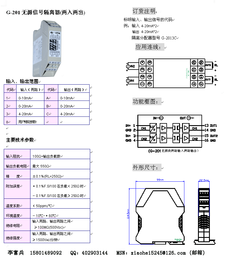 G-201無(wú)源兩入兩出信號(hào)隔離器
