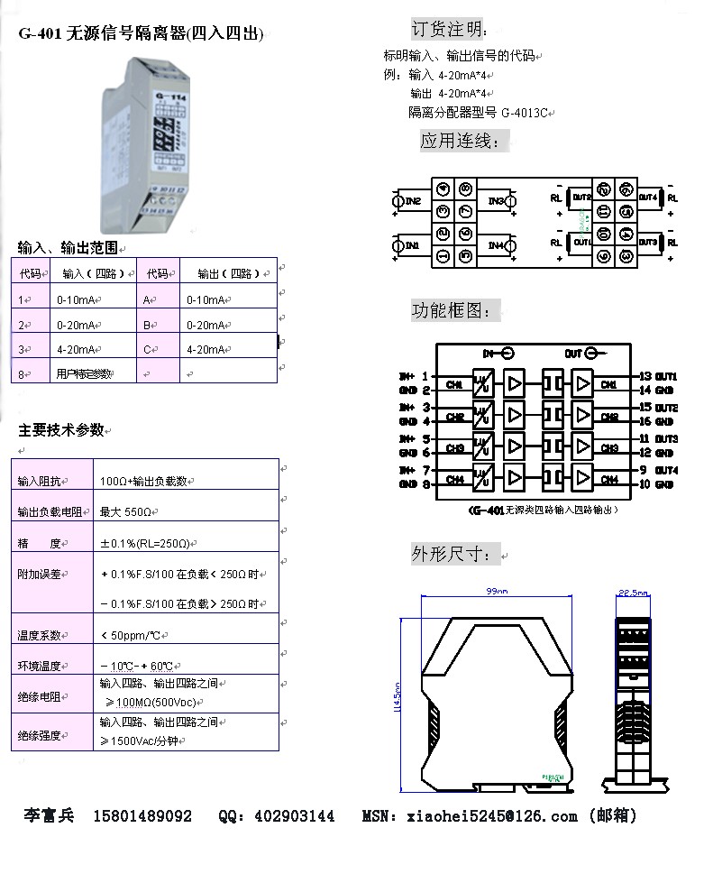 G-401無源四入四出信號隔離器 帕羅肯科技有限公司