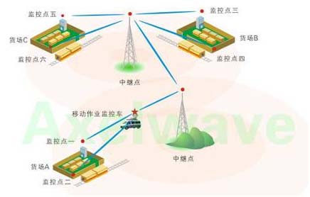 鐵路貨場一般有兩種,固定的車站貨場和鐵路沿線臨時貨場。艾克賽爾(Axelwave)無線網絡利用自身電信級無線網橋等產品,采用點對點或點對多點的數據傳輸方式來傳輸視頻信息,從而建立起貨場無線監控系統。除固定點的監控外,這套無線監控系統還支持移動監控,極大地完善貨場的安防管理。
