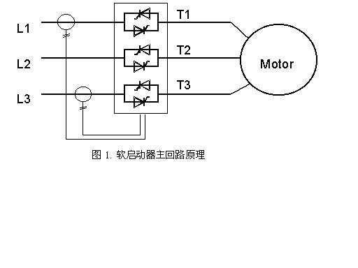 電機啟動器決定使用軟啟動器。軟啟動器的基本原理如圖1所示,通過控制可控硅的導通角來控制輸出電壓。因此,軟啟動器從本質上是一種能夠自動控制的降壓啟動器,由于能夠任意調節輸出電壓,作電流閉環控制,因而比傳統的降壓啟動方式(如串電阻啟動,自耦變壓器啟動等)有更多優點。例如滿載啟動風機水泵等變轉矩負載、實現電機軟停止、應用于水泵能完全消除水錘效應等。
