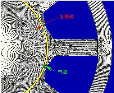 普通的永磁同步電機(jī)機(jī)構(gòu)如圖一,定子為普通的硅鋼片,導(dǎo)磁性能良好;轉(zhuǎn)子表面覆蓋永磁體,轉(zhuǎn)子內(nèi)部依然為導(dǎo)磁性能良好的鐵。轉(zhuǎn)子與定子之間的氣隙約0.2毫米,與普通異步電機(jī)相仿。