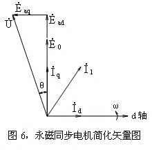 忽略定子電阻和漏抗以后,可以得到永磁同步電機(jī)簡化的矢量圖如圖六。
