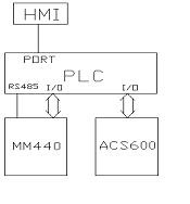 兩臺變頻器的起動/停止,故障報警全部通過數字I/O點控制;收卷跳舞輪位置控制由ACS600獨立完成;主機轉速由S7-200 PLC通過RS485串行通訊口給定。