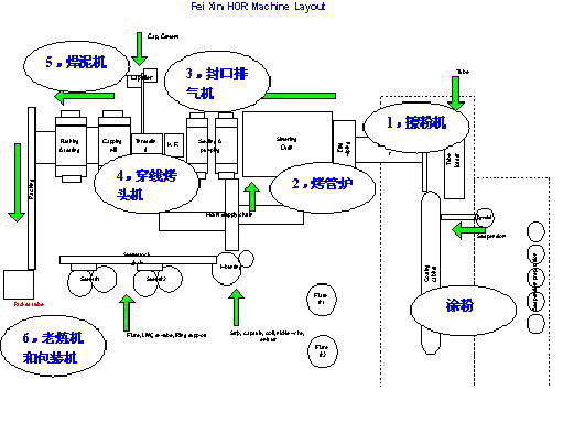 2. 烤管爐(Sintering oven,SO),用煤氣輻射火頭將粉管烘烤至一定溫度,使熒光粉中的不穩定物質充分分解,揮發。