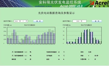 監(jiān)控系統(tǒng)對(duì)光伏發(fā)電的發(fā)電量可形成月棒圖及年度棒圖顯示,并折算成二氧化碳、二氧化硫減排量值;并可查看太陽輻射強(qiáng)度趨勢(shì)曲線、風(fēng)速變化趨勢(shì)曲線顯示