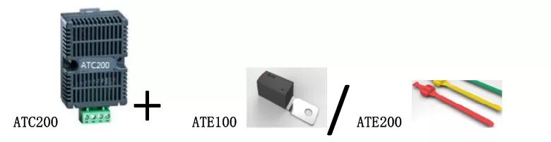 說明:ATC200 無線溫度收發器最多可連接 12 路有源無線溫度傳感器, ATE100(螺栓式安裝,主要用于電纜/銅排等螺絲固定的搭接點)和 ATE200(表帶式,主要用于斷路器觸頭等接點捆綁安裝,因安裝較 ATE100 更方便,電纜/銅排等搭接點也常選用)。僅限于接收同一臺開關柜內有源無線溫度傳感器溫度信號,如柜內無線溫度傳感器數量大于 12 點,需配置多個收發器。)